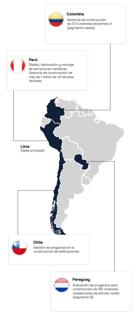 Somos una empresa peruana formada por profesionales con más de 33 años de experiencia nacional e internacional brindando servicios de ingeniería y construcción fomentando la confianza, la comunicación transparente y donde la toma de decisiones cumpla con los objetivos de su misión, visión y valores corporativos.
